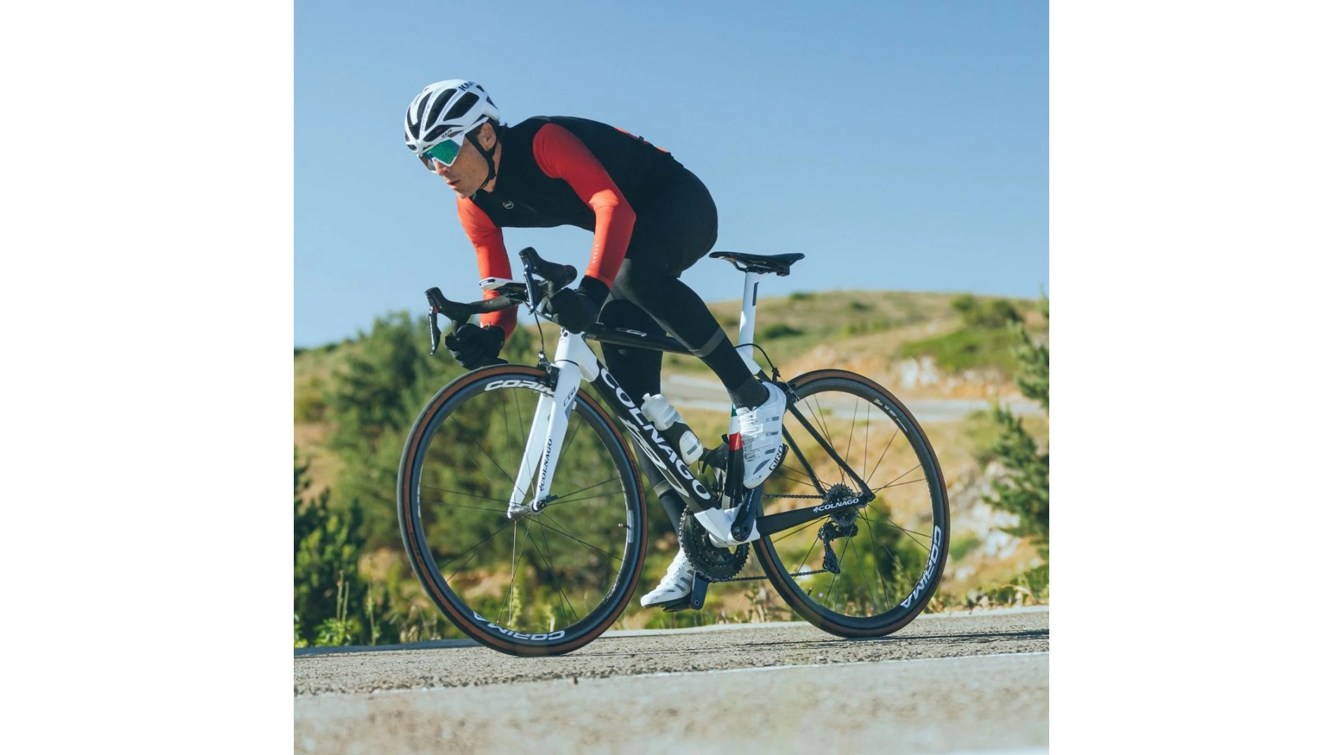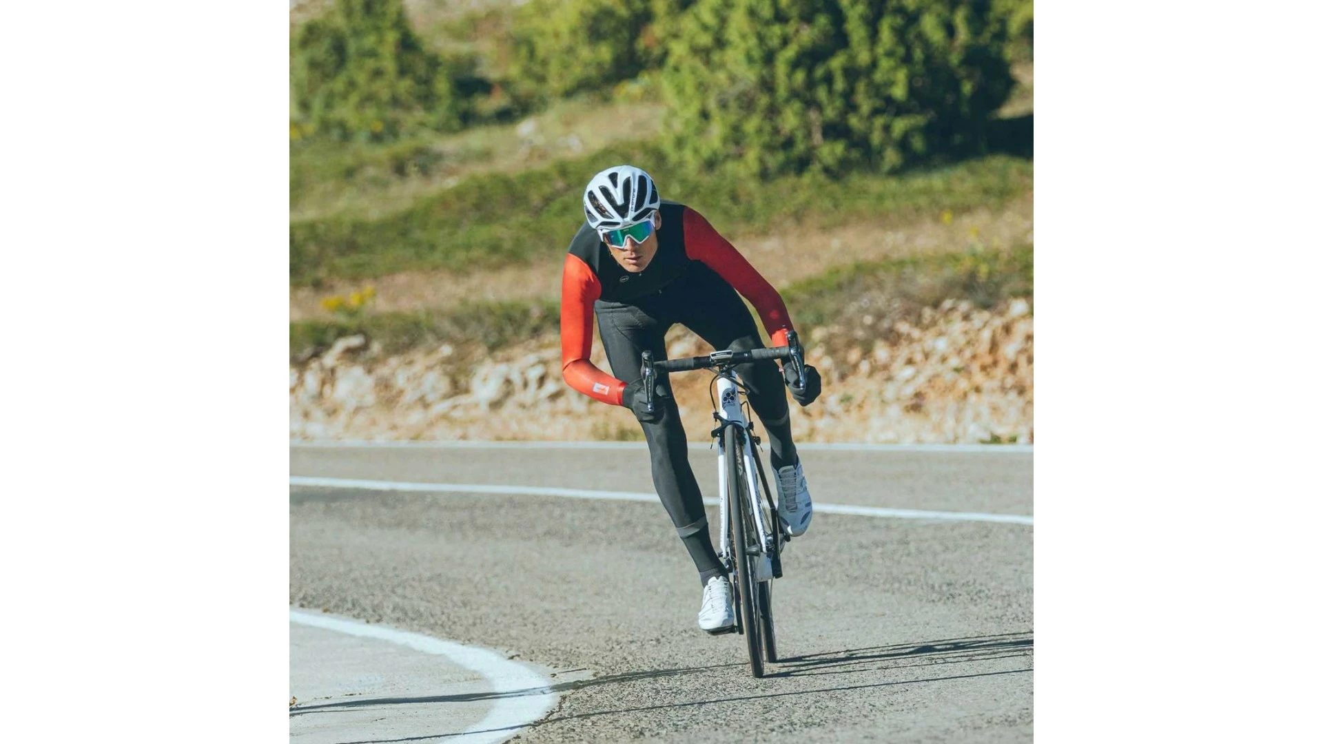 Eng anliegende Außenhülle mit einer Struktur, die die Position auf dem Fahrrad begünstigt.